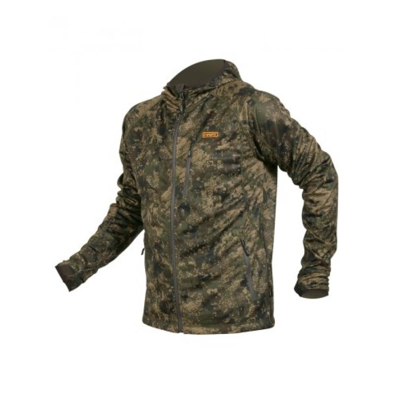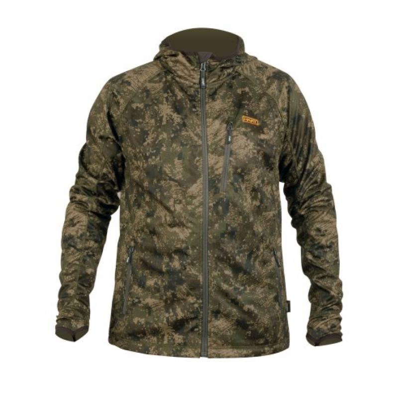 Coupe ergonomique et ajustée. Utilisation en couche intermédiaire ou extérieure. 3 poches : poche poitrine zippée avec port multimédia à l'intérieur pour connecter vos écouteurs et 2 poches inférieures zippées. Poignets extensibles avec trous pour les pouces. Masque caché sur la capuche pour une dissimulation totale.