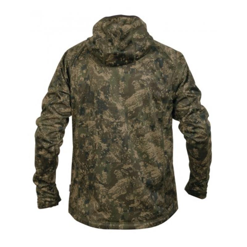 Tissu extrêmement silencieux, extensible, doux et hautement respirant, traité anti-insectes Tanatex® (tiques, moustiques, mouches..). Les micro points du tissu laissent passer même la moindre brise, vous gardant au frais sans sacrifier la durabilité. L'ajustement et l'extensibilité permettent d'utiliser une couche de base en dessous les matins et les soirs les plus frais, bien que la couche intérieure structurée en micropolaire offre également une isolation de base.